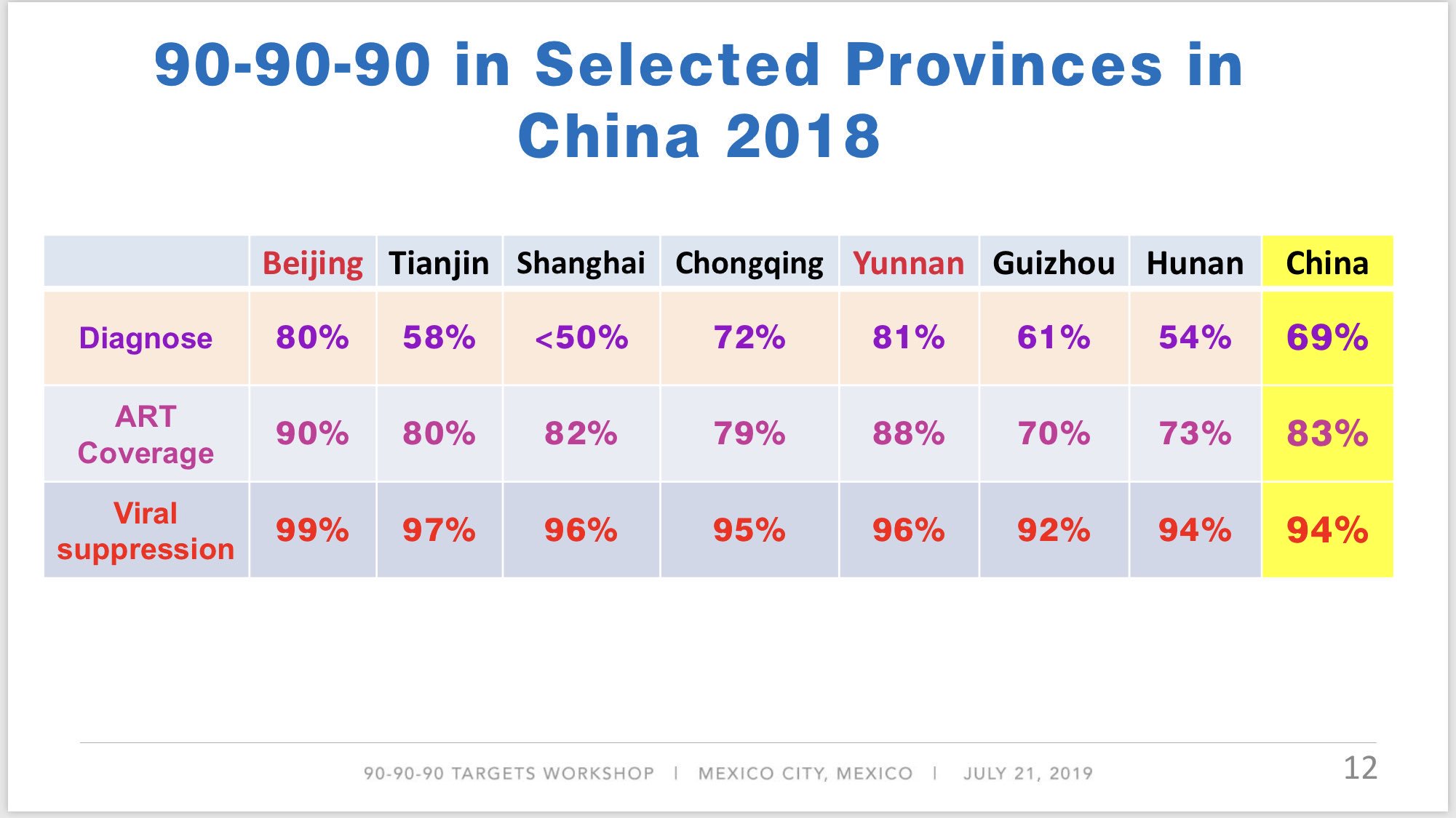 Representatives from China, France, Mexico, and South Africa presented country-level estimates about progress in closing HIV testing, treatment, and viral suppression gaps in the context of the 90-90-90 targets. These targets seek to ensure that 90% of people living with HIV know their status, 90% of people who know they are HIV-positive are receiving antiretroviral therapy (ART), and 90% of those on ART achieve and maintain viral suppression. Achieving zero stigma is an additional but no less important UNAIDS target.